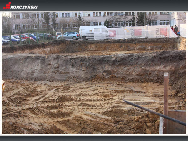 budowa budynku mieszkalnego wielorodzinnego z usługami w parterze.